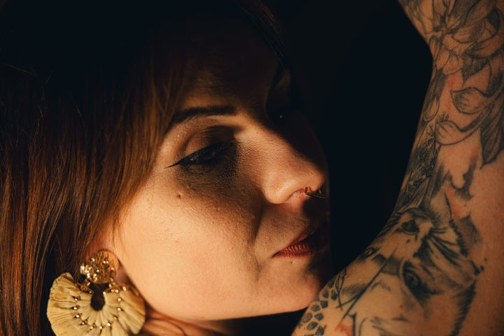 J'ai eu le privilège de travailler avec une tatoueuse pour un shooting photo où j'ai cherché à sublimer son univers artistique. À travers des tons orangés et dorés.